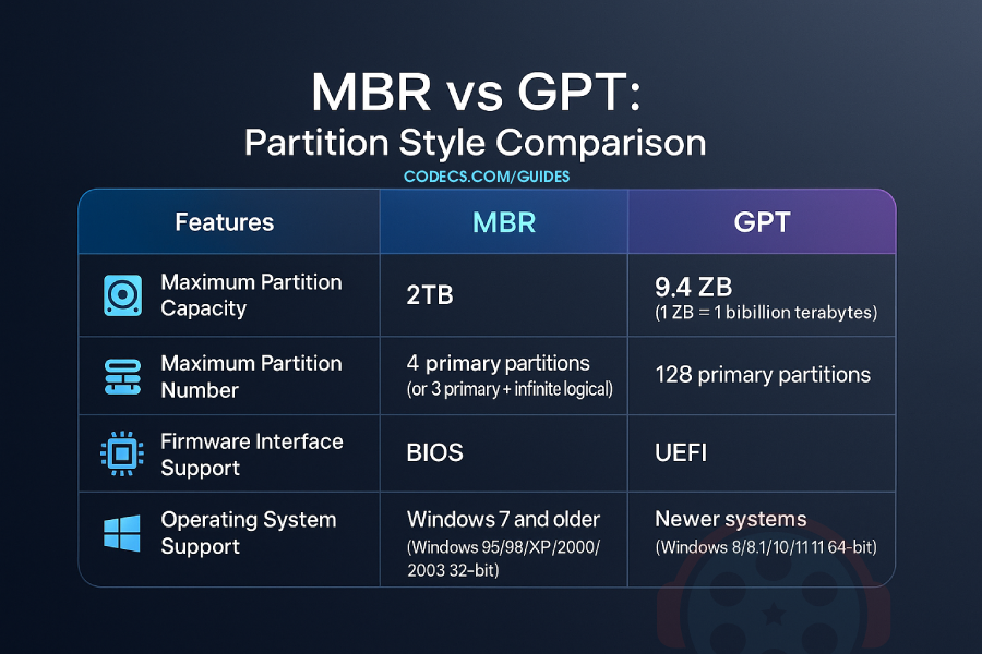 Partition scheme: GPT (for UEFI) or MBR (for Legacy BIOS).