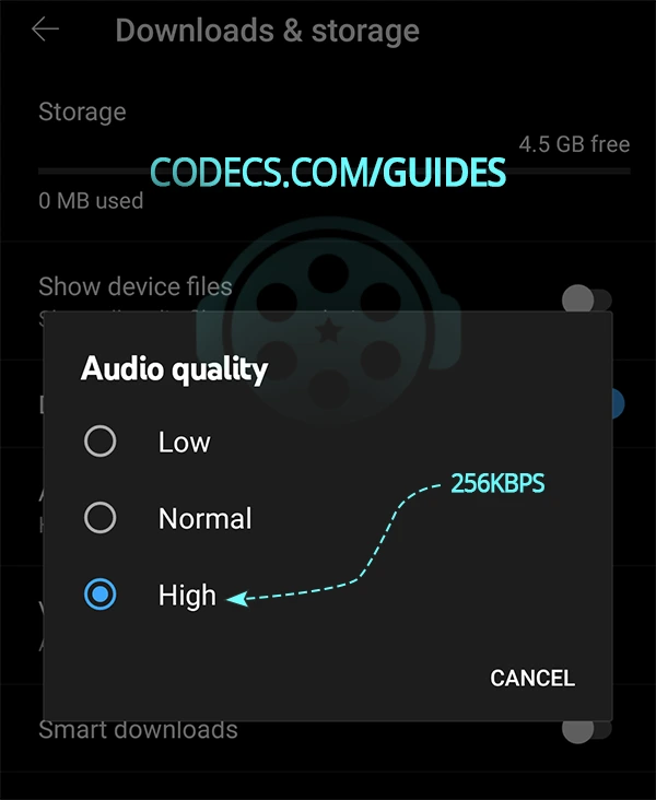 - Go to Settings → Download & storage → Audio quality.
